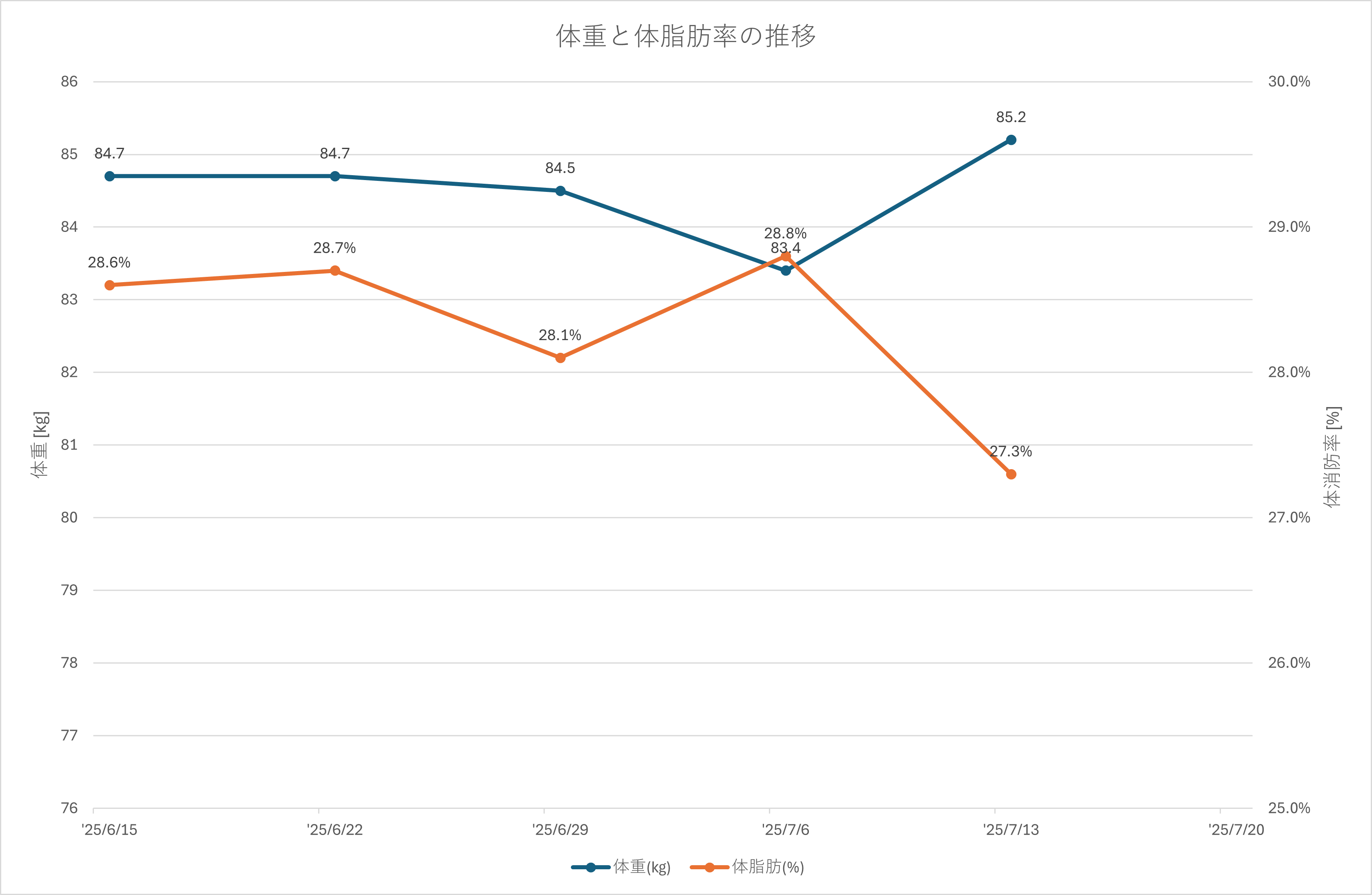 次に今週の体重ですが、日曜朝の測定で「85.2kg」でした。