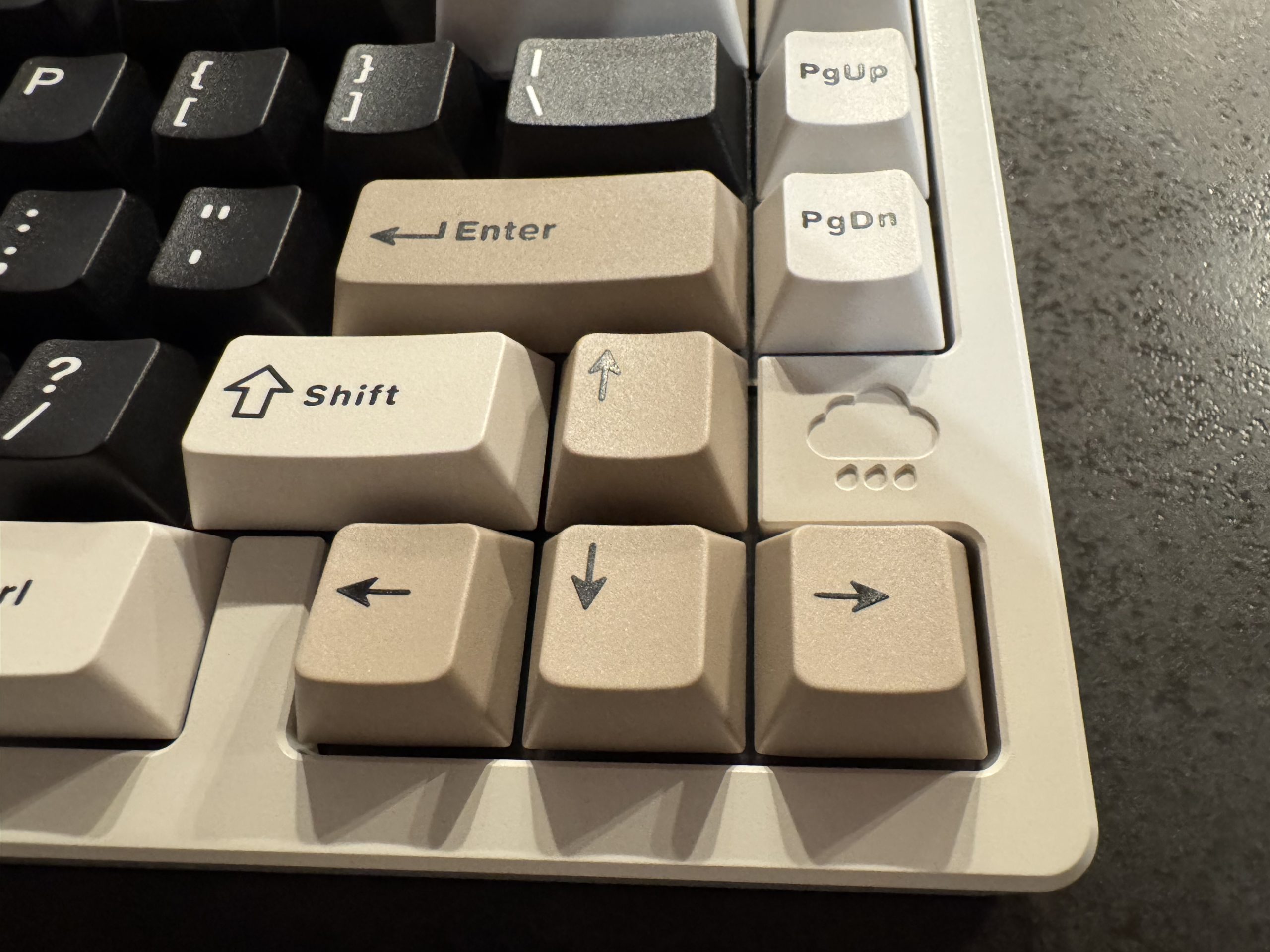 最近のキーボードに多い、無機質で冷たい白とは方向性が異なり、どこか柔らかさを感じる仕上がりです。