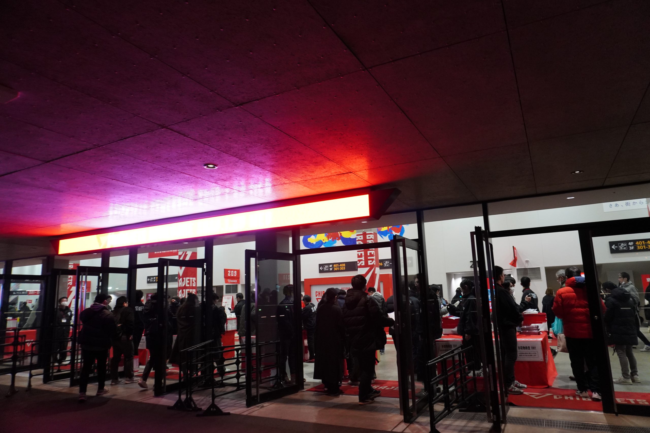 ららぽーとを出て歩き始めると、徐々にアリーナに向かう人の流れが目に入ってきます。