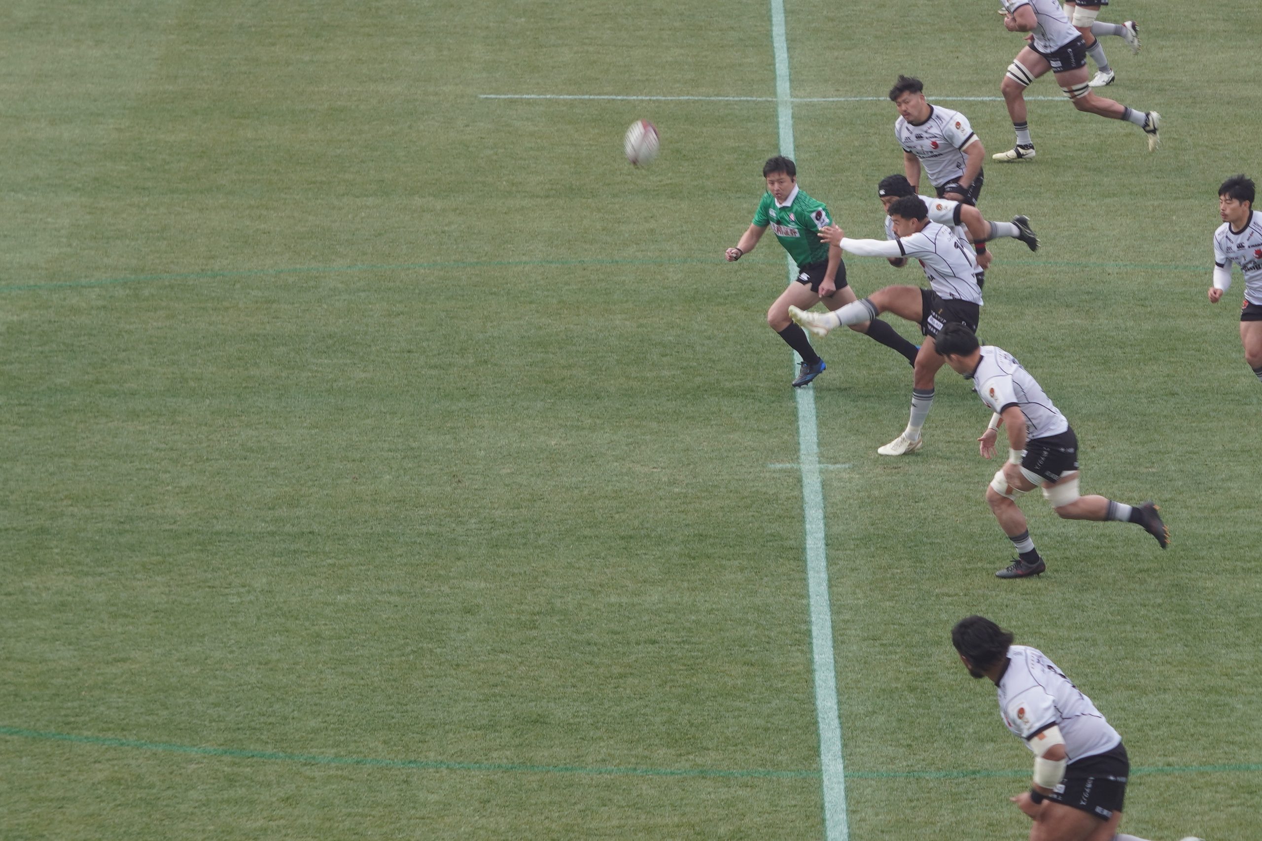 目の前でボールが動き、タックルが決まり、ラインが押し上げられていく。